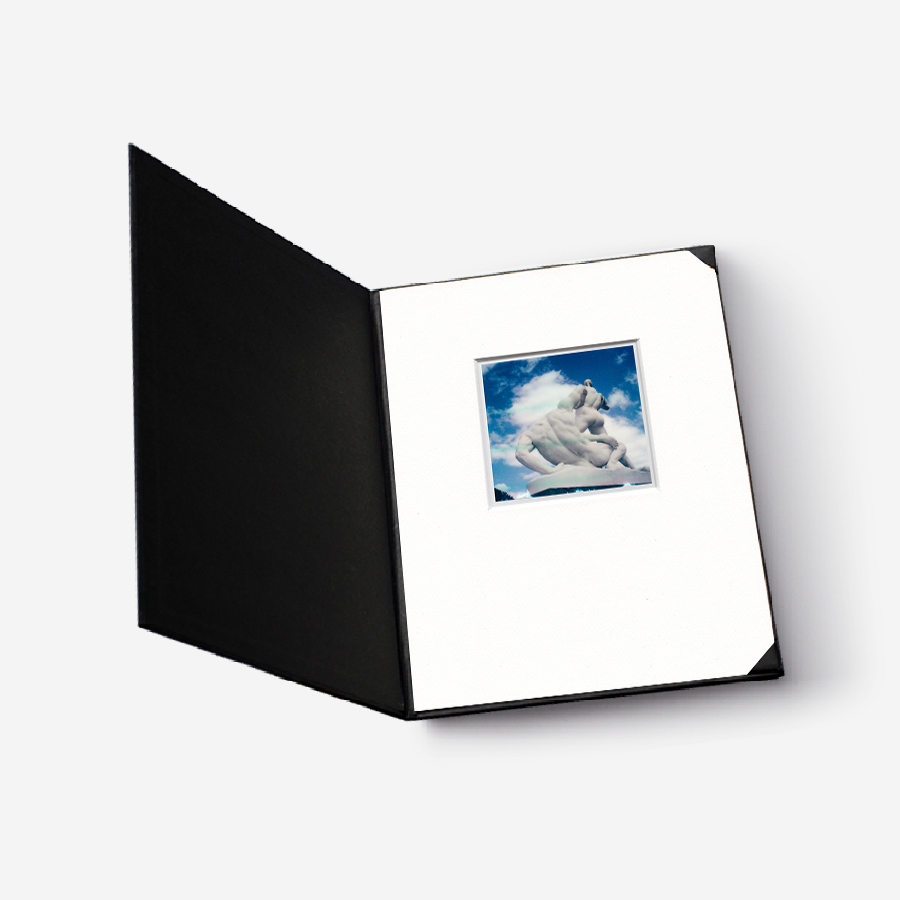 Todas las fotografías Polaroid son copias únicas, montadas en un paspartout tamaño 18 x 24 cm, y presentadas en un packaging hecho a mano.